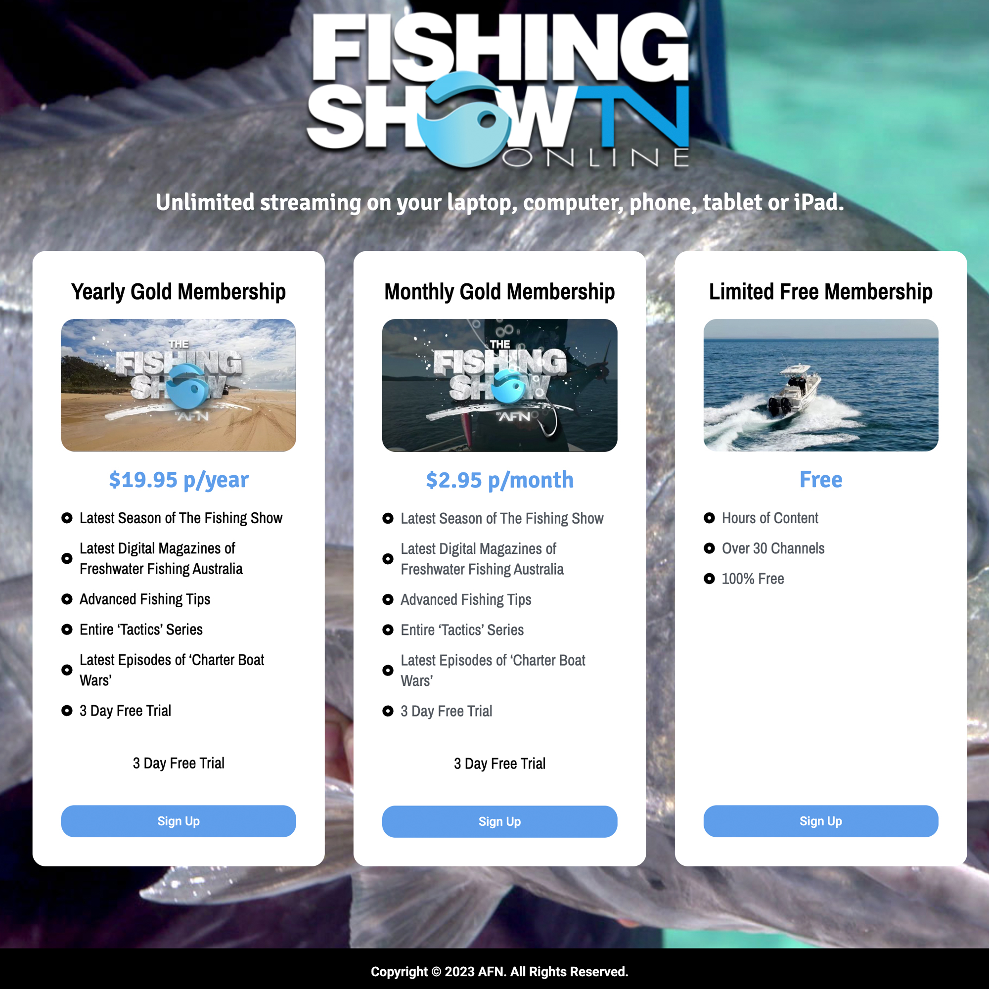 Subscription-based access to thousands of awesome fishing, hunting 4WD and boating videos.
