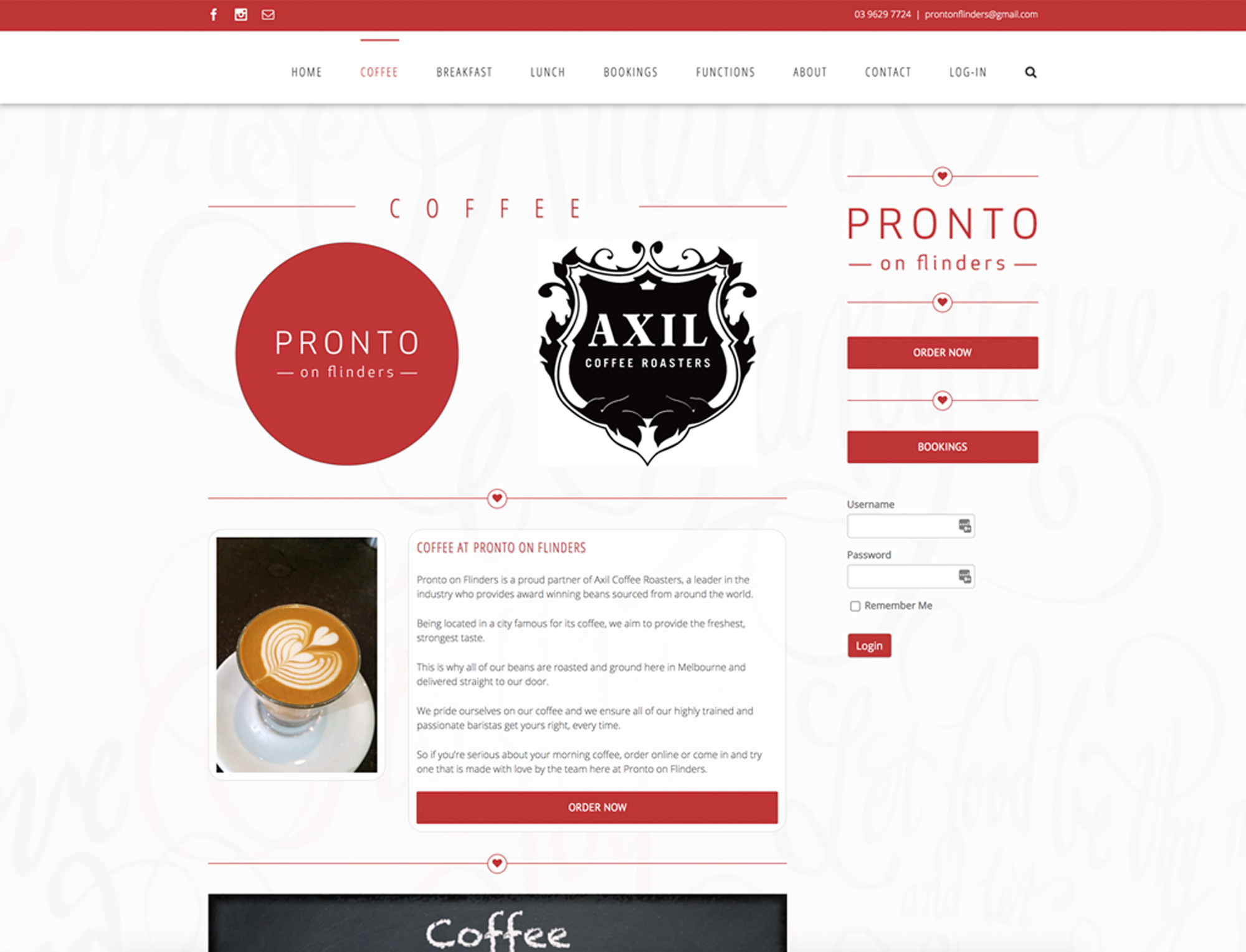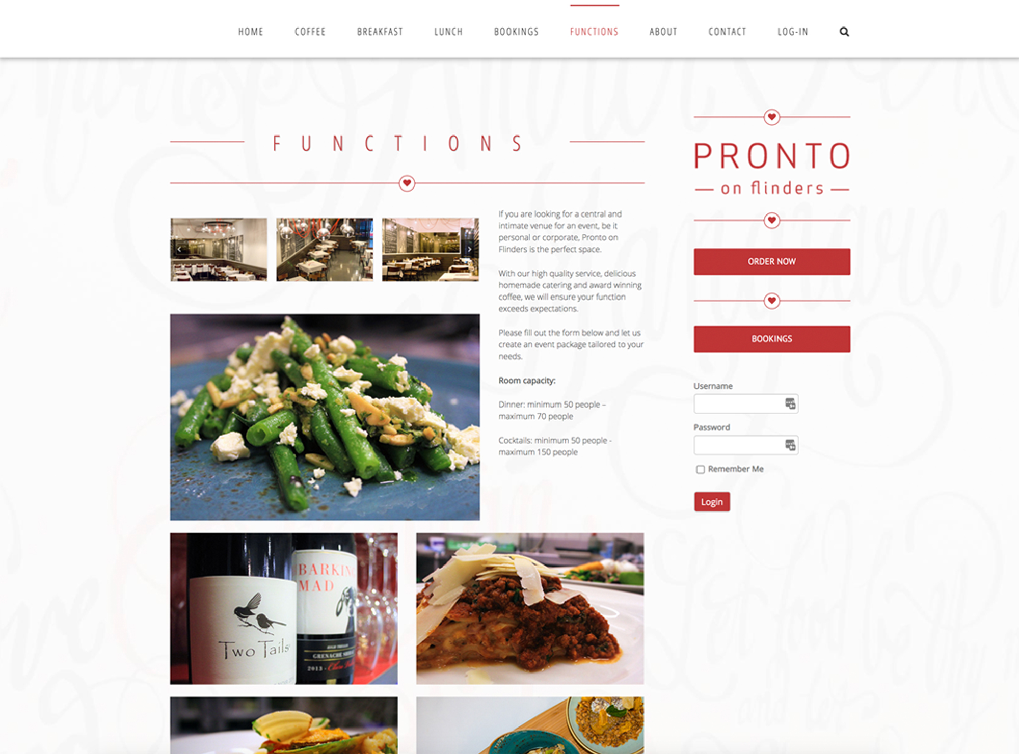 A traditional Italian Brasserie with an urban touch, Pronto asked us to create a site that showcased the great food and atmosphere. A practical requirement for the website was an application where express orders for food and coffee could be made for the busy clientele with SMS notifications, among other features.