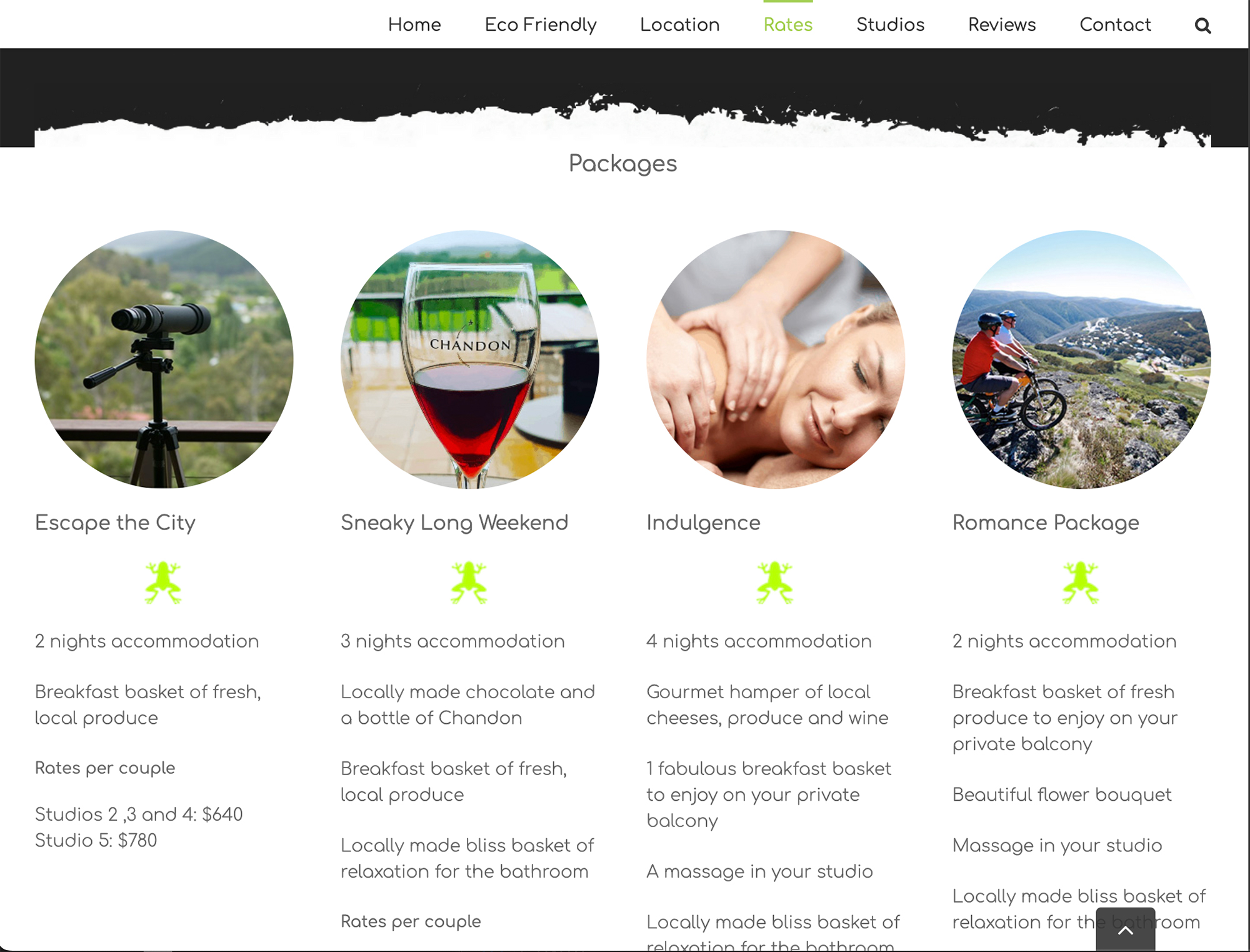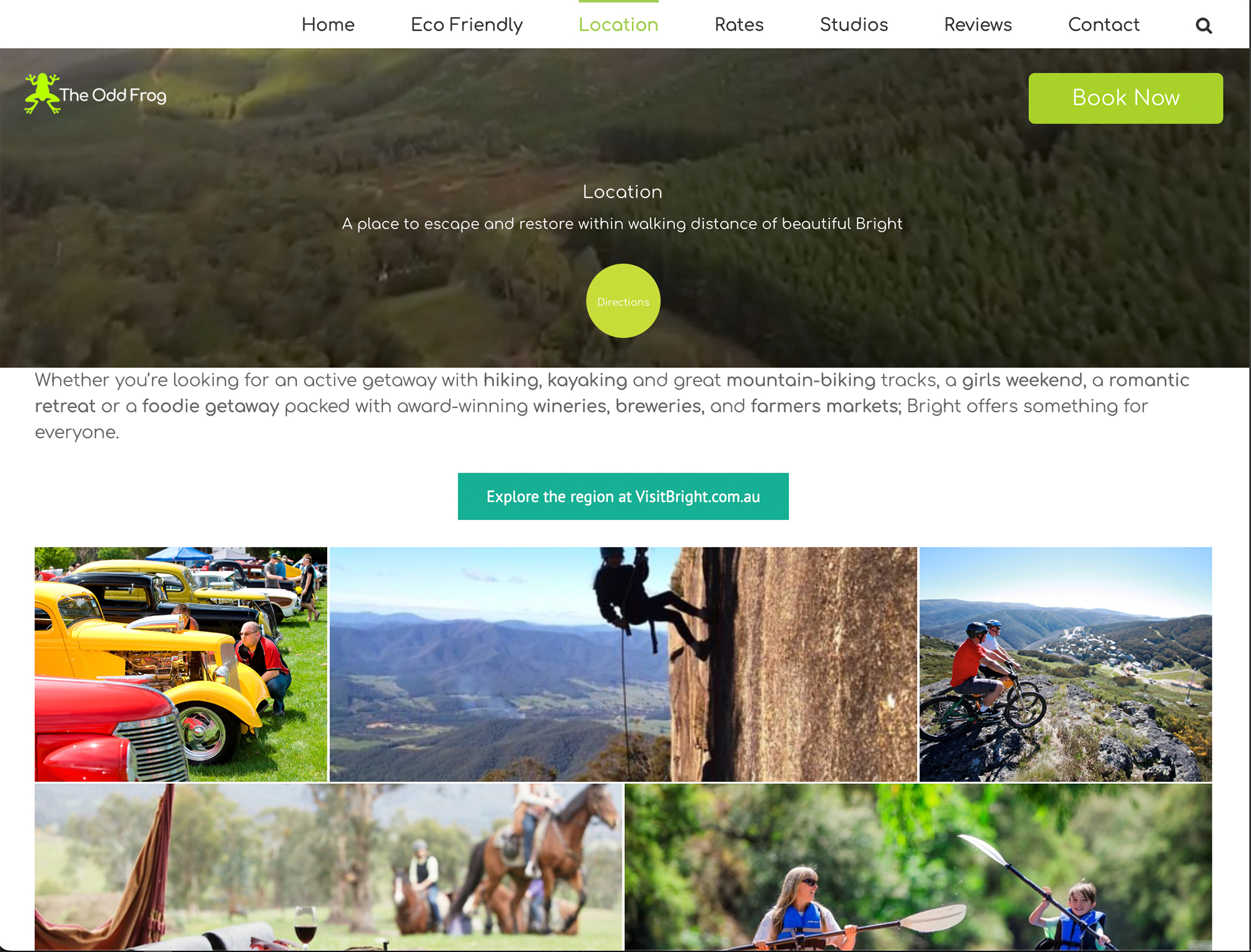The Odd Frog offers romantic treehouses set amidst 10 acres of secluded bushland with an abundance of wildlife from kangaroos to king parrots and native flora only a short walk to Bright town centre. It’s a beautiful location!
